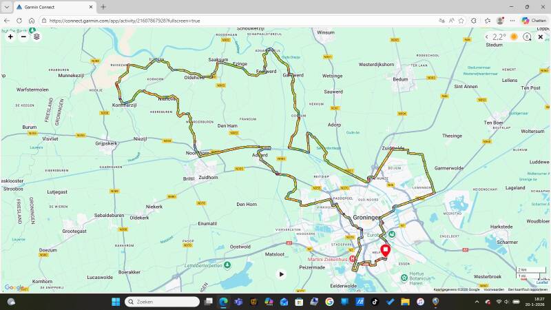 Ik reed via de kaart van Groningen naar Peize, Roden, Leek en zo weer terug.