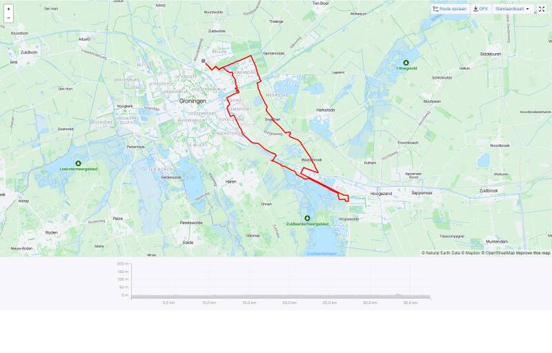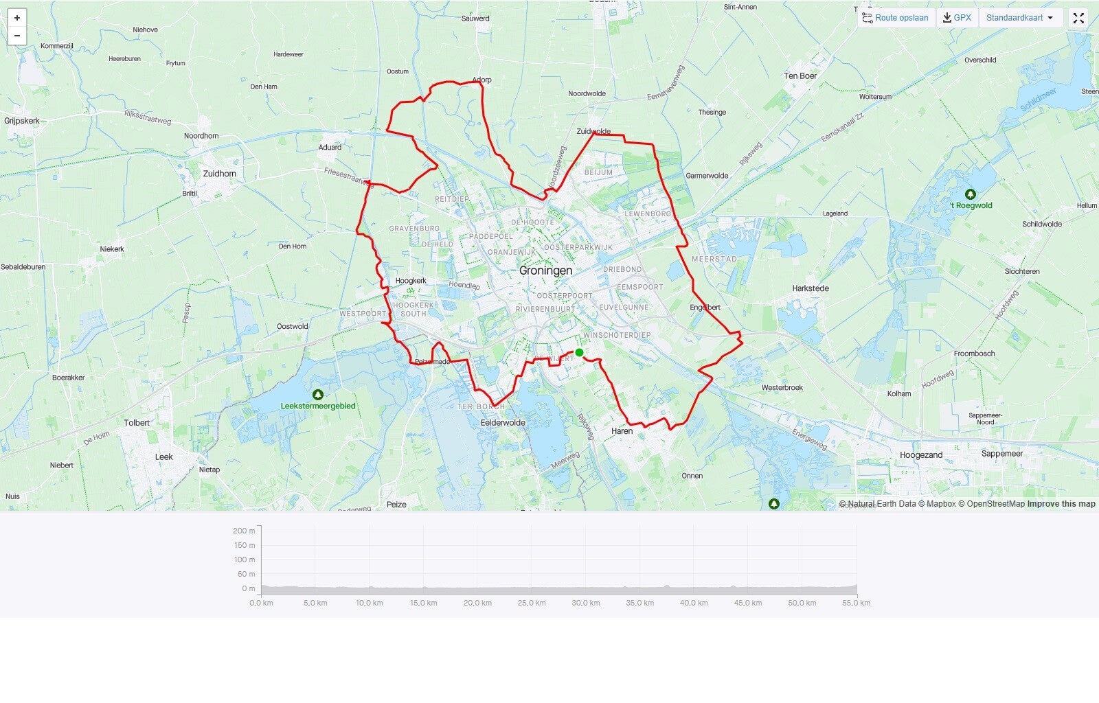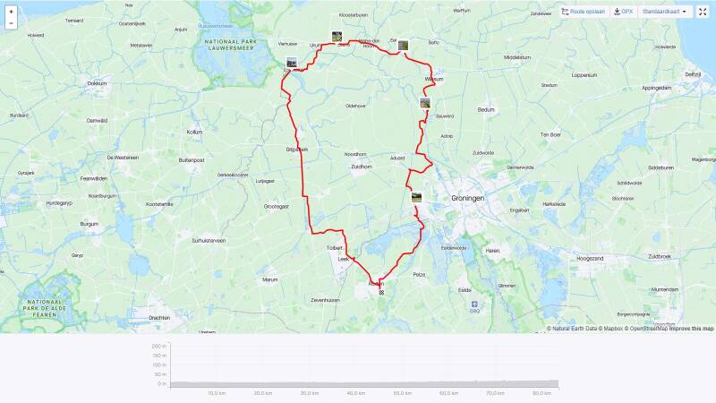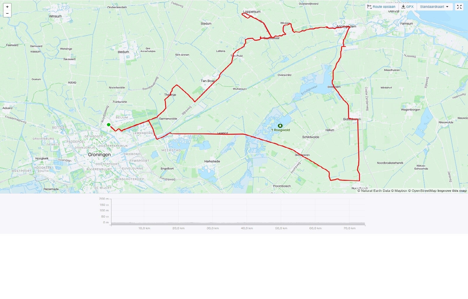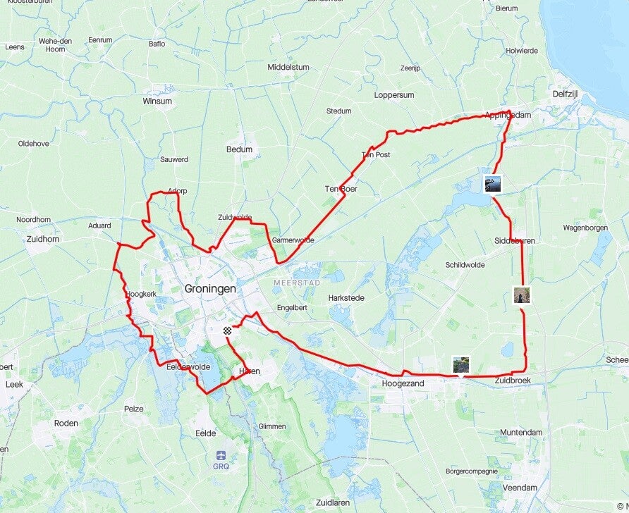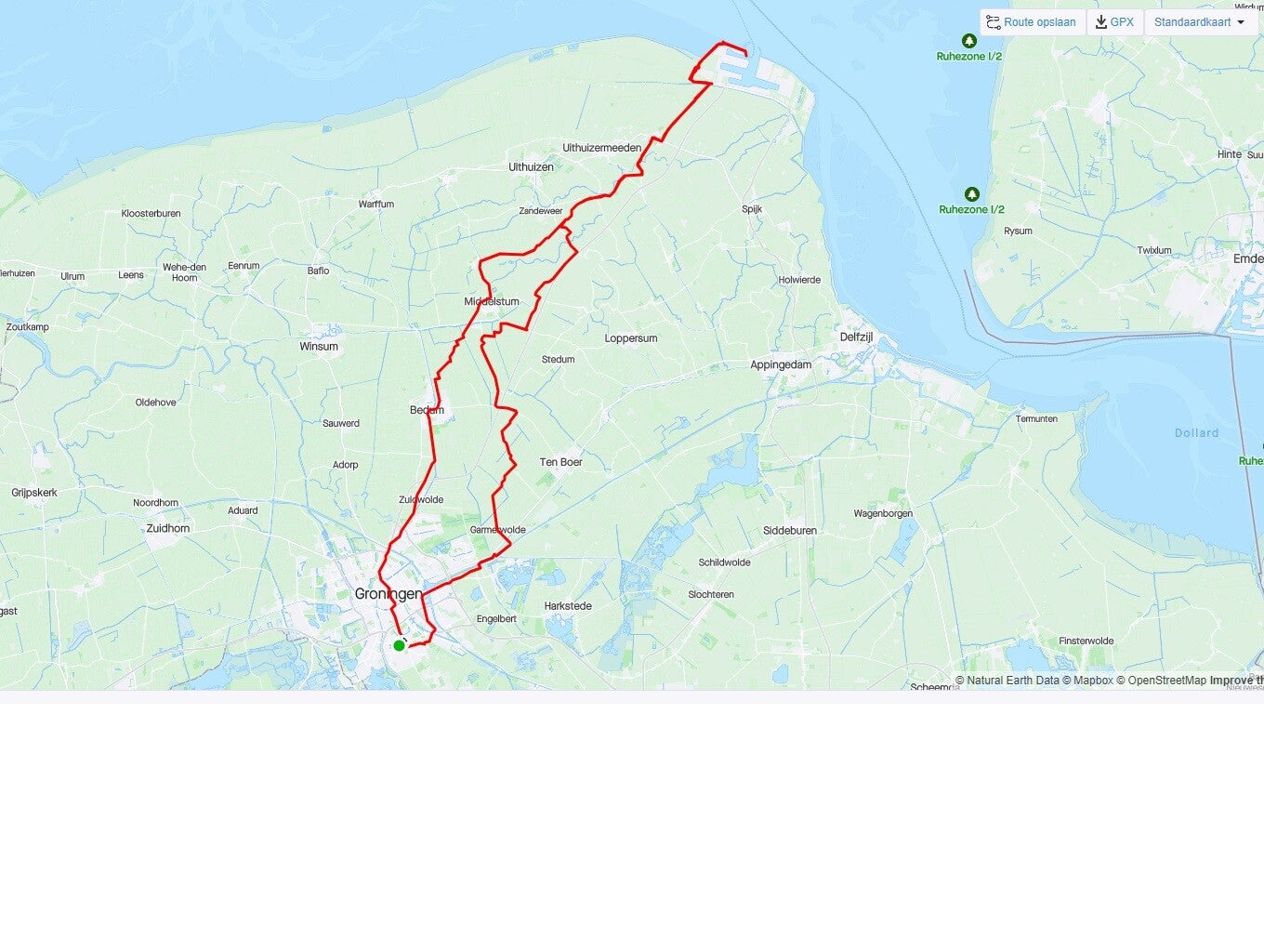 De Buffel ging meteen akkoord en maakte in de Garmin een rondje van bijna 50 kilometer: via Bedum naar Warffum, Winsum en over Garnwerd weer terug.