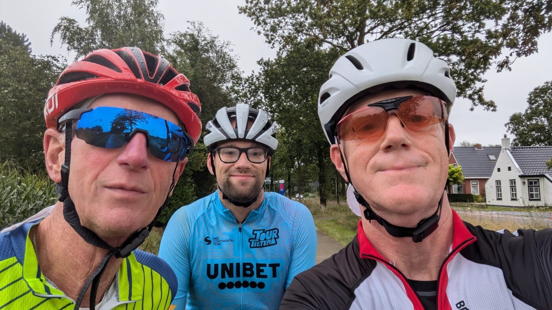 Vol goede moed gingen de drie mannen om 8.30 uur van start: de koppies stonden nog vrolijk, de beentjes hingen er nog goed bij en het moraal was van een ongekend hoog niveau.