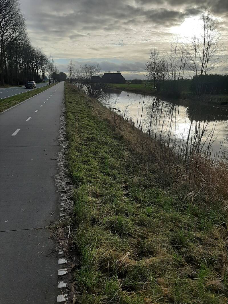 Lekker fietsweer, maar op de een of andere manier waaide het toch wel flink: en dat is raar, want hier thuis in de straat staan de bomen bijna roerloos...